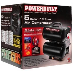 New ⌛ Powerbuilt 5 Gallon Twin Tank 2HP Motor 125 MAX PSI ACC Air Compressor – 641594 ✨