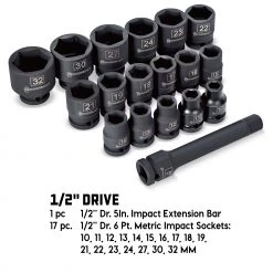 Promo ๐ Powerbuilt 18 Piece 1/2 Inch Drive 6 Point Metric Impact Socket Set – 940838 ๐
