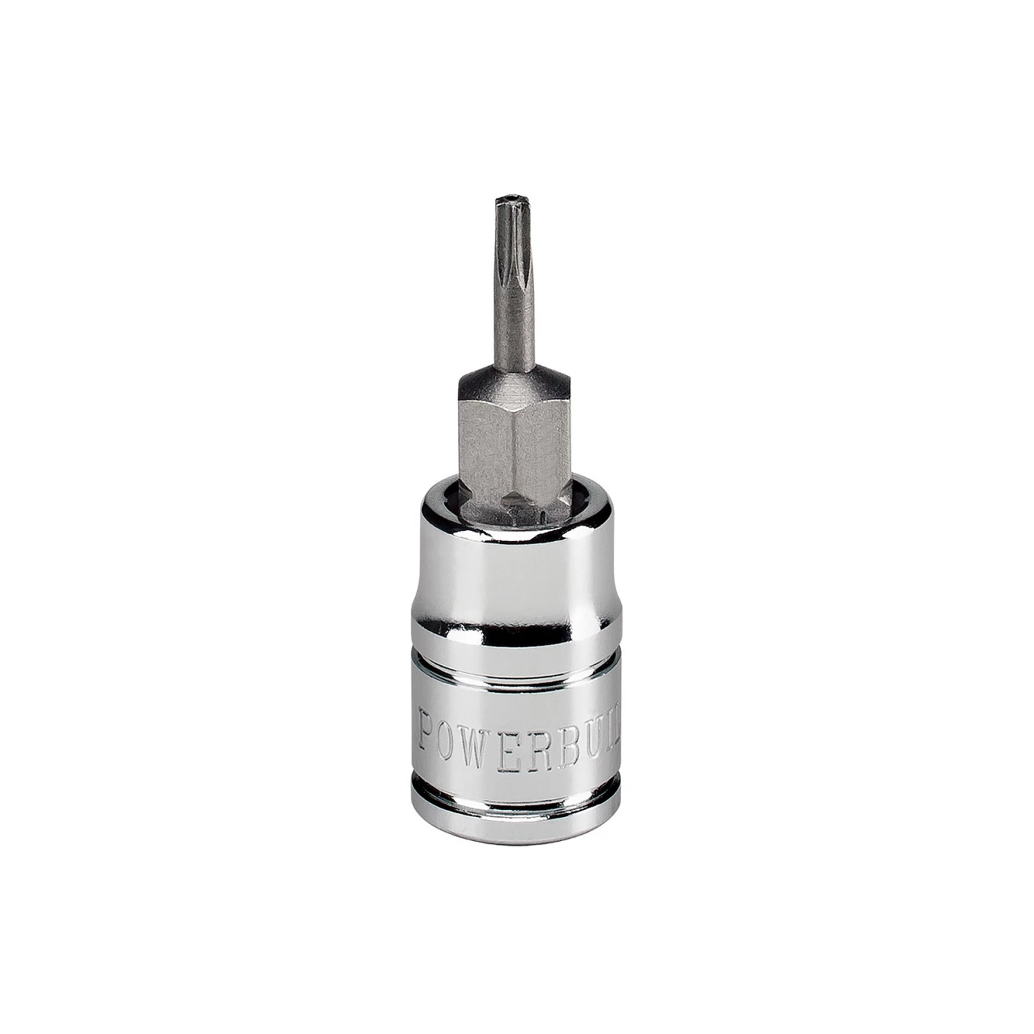 These tough Tamper Proof Star bit sockets are built for the toughest jobs. Powerbuilt 1/4 Inch Drive T-8 Tamper Proof Star Bit Socket features a 2-piece press-fit design for strength and durability. Socket bodies are constructed of tough Chrome Vanadium Steel and mated to S-2 industrial-grade steel bits which ensure a lifetime of reliable use. The hardened S2 steel bits are precision ground for a tight fit onto Tamper-proof Torx Star fasteners. The bit’s Zinc Phosphate coating allows for a protective non-slip function preventing bolts from striping. High visibility sizing is stamped into the mirror-polished Chrome Vanadium sockets.