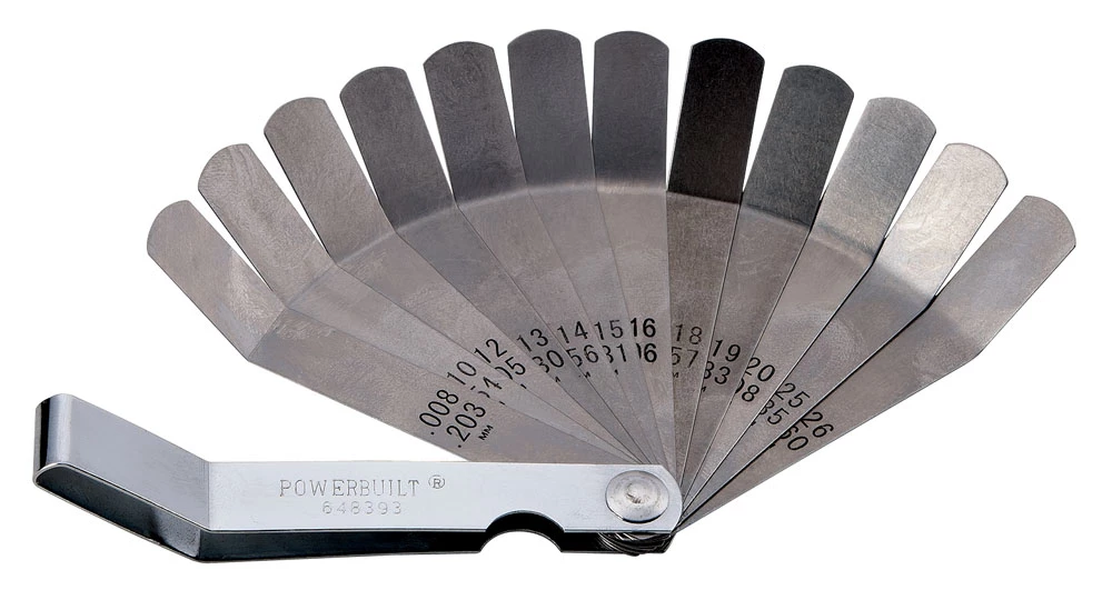 The Powerbuilt 12 Blade Valve Tappet Gauge measures and sets valve tappet clearances. Twelve blades measure clearance from 0.008″ through 0.026″ (0.203mm through 0.660mm). This gauge is forged from durable carbon steel.Any automotive specialty tool makes an automotive repair or maintenance task easier, but Powerbuilt takes the concept of ‘help’ a big step further.Every package comes with professionally written usage instructions and photos that take you step by step through proper tool usage.Dependable Powerbuilt specialty tools offer power, precision and style. They meet or exceed applicable ANSI standards and have a lifetime warranty, all at affordable prices.