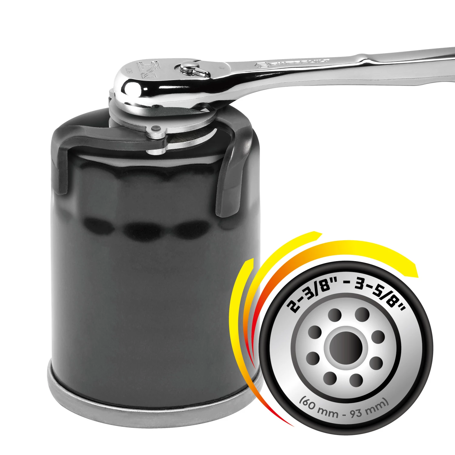 Changing those hard-to-reach oil filters in tight spaces can be the worst part of an oil change. Powerbuilt 3 Jaw Auto-Adjusting Magnetic Oil Filter Wrench is designed to help you easily and quickly remove those frustrating oil filters. Manufactured from heat-treated carbon steel, the spider oil filter wrench is solid and durable for long tool life. The three spring adjusted anti-slip arms give you a firm grip on filters from 2 3/8 inches to 3 5/8 inches. Attach an extension bar to a 3/8 inch drive ratchet to the oil filter wrench and turn to break the filter-free and remove.