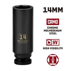 - 3/8″ drive 14mm impact deep well 6 point socket