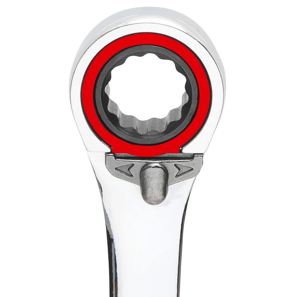 This Powerbuilt 8mm Reversible Ratcheting Wrench is designed to excel in even the tightest spaces where other ratchets fail. Its 72-tooth ratcheting mechanism only needs a 5-degree swing to engage. It’s constructed from tough chrome vanadium, which resists wear better than steel alone. Backed up by a lifetime factory warranty. Powerbuilt tools are built with the performance, features, fit and finish to satisfy the most demanding users, and this ratchet is no exception. Powerbuilt tools and equipment meet or exceed US Government and ANSI standards.