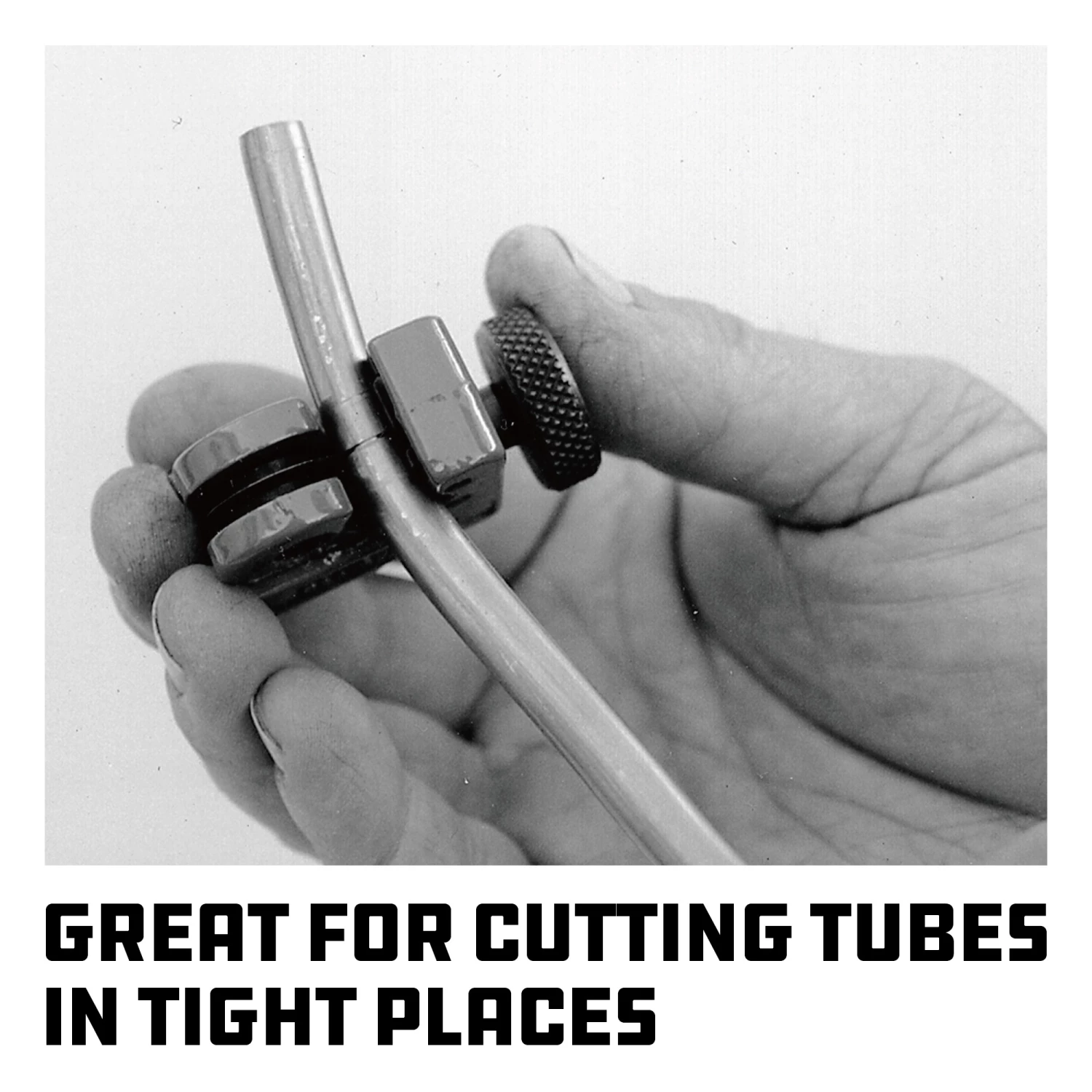 Premium hardened alloy steel blade for cutting brass, copper, aluminum and steel tubing from 1/8-in to 7/8-in in diameter. Two-roller design to ensure clean edges. Knurled adjustment knob.
