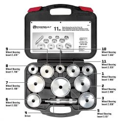 Servicing wheel bearings can be a chore. Removing and installing them without damage to the bearings or the surrounding components is easy if you have the correct tool. This innovative set allows you to remove and install wheel bearings without damaging them. Set includes 10 wheel bearing inserts in sizes to fit most foreign and domestic vehicles. Just find the right insert, slip on the race and tap the bearing race into place. All Powerbuilt kits meet or exceed ANSI and/or ASME standards assuring a lifetime of use. Includes Heavy Duty Carry Case with usage photos and Detailed instructions.