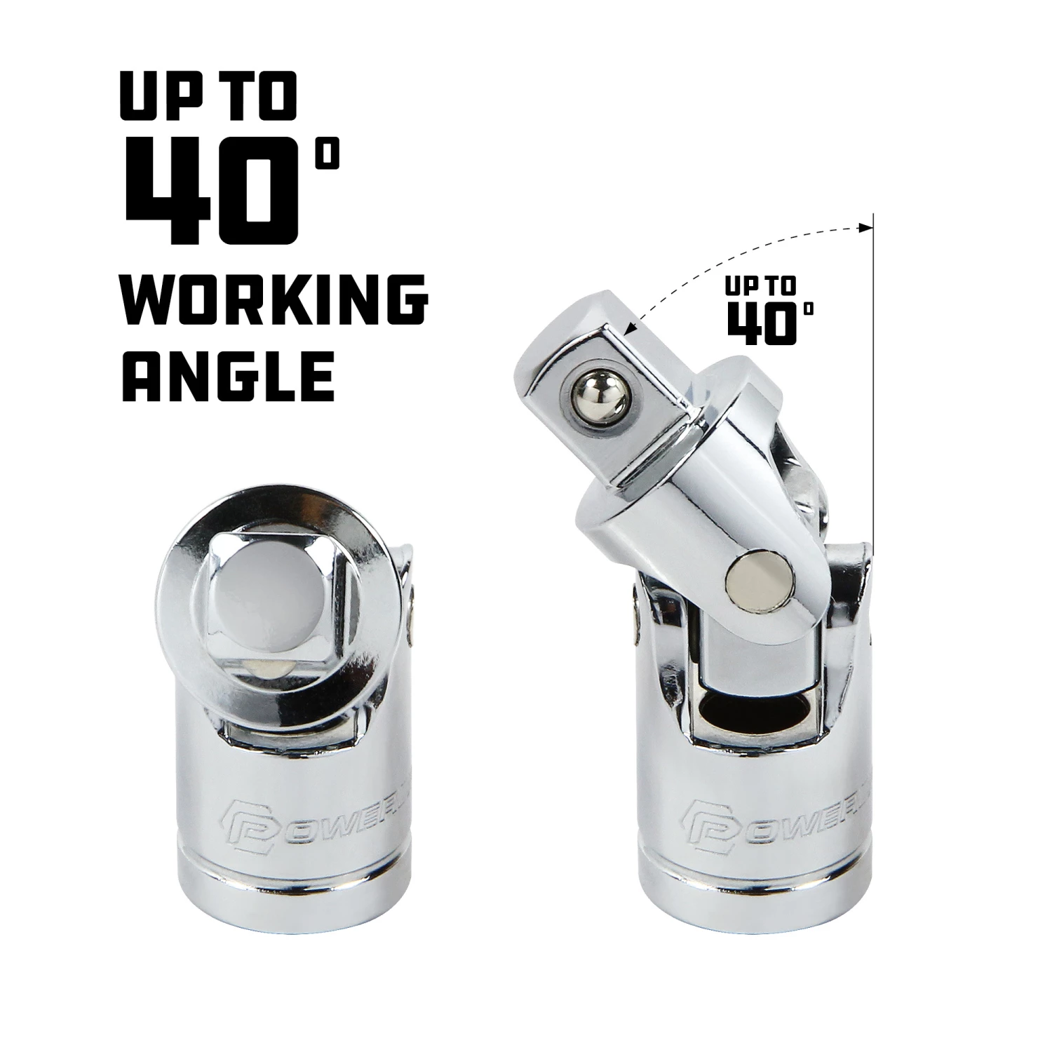 When that nut or bolt is hard to reach or at an awkward angle, reach for Powerbuilt universal joints. Attach it to your ratchet and socket then make quick work of tightening or loosening that bothersome bolt. And don’t think these u-joints are the weakest link. Built using strong chrome vanadium steel, these stylish universal joints can do the job and look good doing it. Precision fit to securely hold sockets and eliminate slop.Dependable Powerbuilt universal joints meet or exceed ANSI standards and have a lifetime warranty, all at affordable prices.