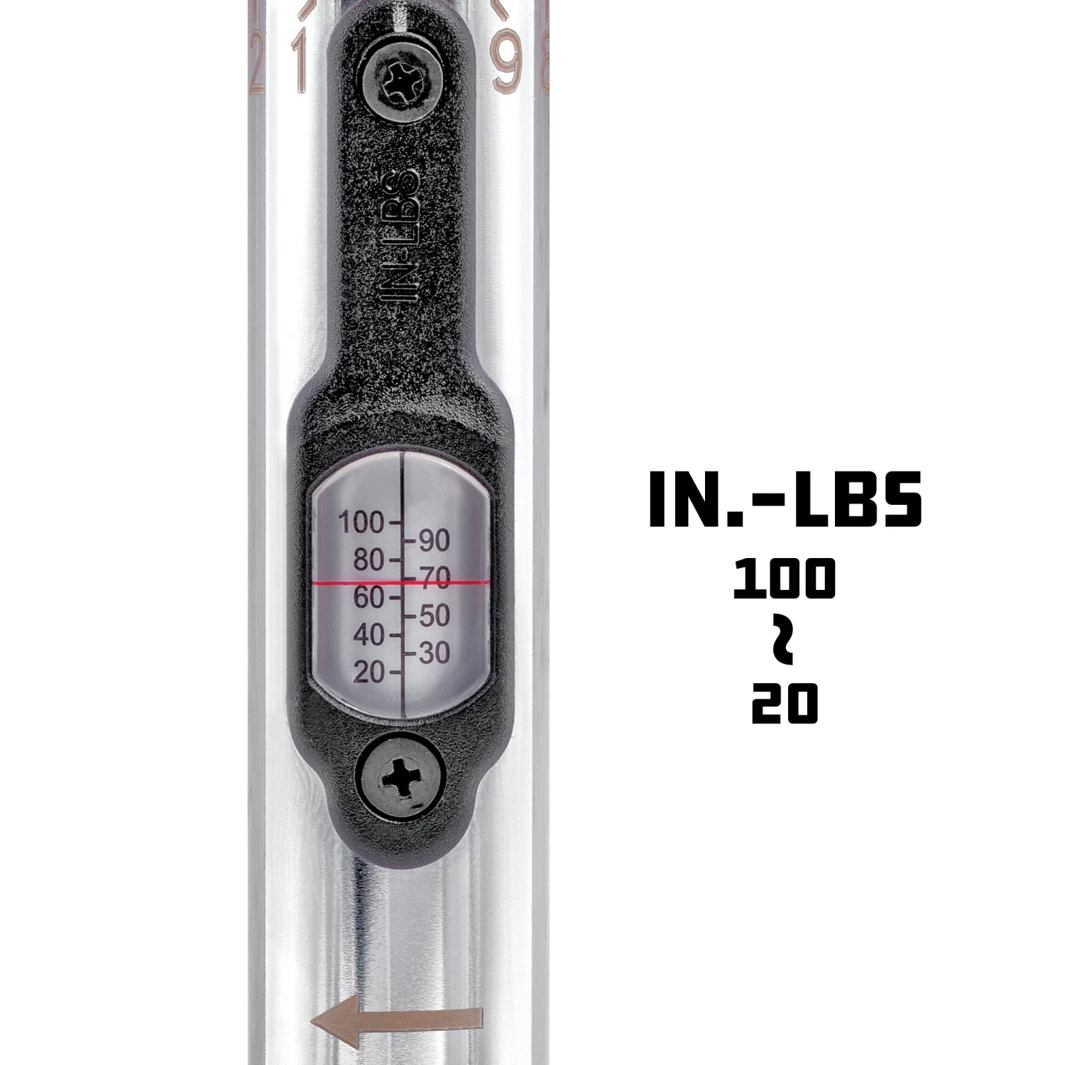 Precision work requires precision tools. The 1/4 inch drive TPMS torque wrench is a purpose-built precision tool to service tire pressure monitoring systems and other work requiring a light and precise hand. This wrench has a built-in one-way ratcheting design to tighten only and allows you to set torque target values on its easy-to-read scale from 20 to 100 inch-pounds. It’s not just the perfect wrench for tire pressure systems but works well with bike components and carbon fiber accessories requiring specific torque specifications. The comfortable T-handle is large enough for a secure grip allowing for proper leverage while preventing over-torquing. Simply attach a 1/4 inch socket and you are ready to go.