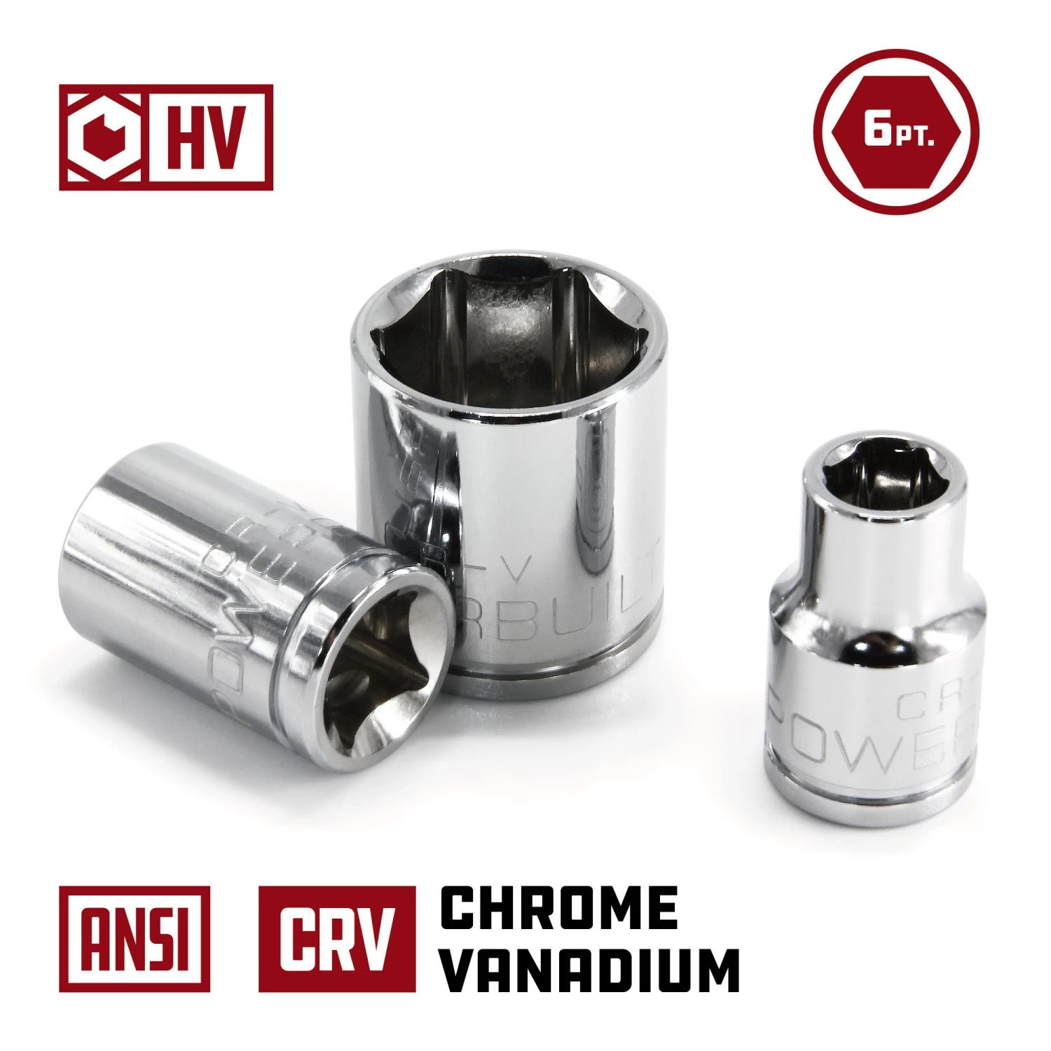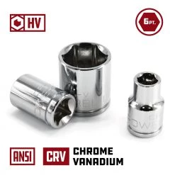 Powerbuilt Sockets are made from high grade Chrome Vanadium Steel and feature a mirror polished chrome plated finish for superior durability and corrosion resistance. Each Powerbuilt socket is cold forged, heat treated and produced with precision tolerances.