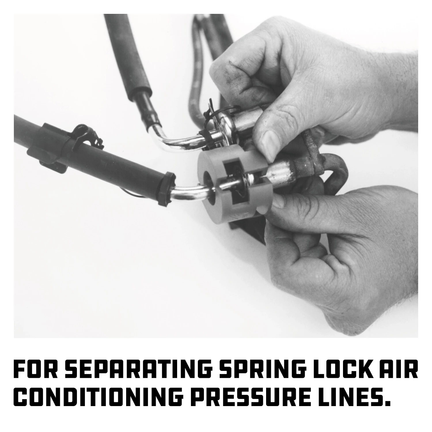 Makes it easy to separate spring lock air conditioning pressure lines on 1981-current Ford vehicles and 1994 and newer Chrysler and jeep vehicles.