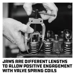 Remove valve springs without removing the cylinder head with this overhead valve spring compressor. The different length jaws allow the spring compressor to get a grip on the valve spring coils in two separate places. The T-handle has a hex surface so the screw can also be turned with a socket or end wrench.Any automotive specialty tool makes an automotive repair or maintenance task easier, but Powerbuilt takes the concept of ‘help’ a big step further.Every package comes with professionally written usage instructions and photos that take you step by step through proper tool usage.Dependable Powerbuilt specialty tools offer power, precision and style. They meet or exceed applicable ANSI standards and have a lifetime warranty, all at affordable prices.