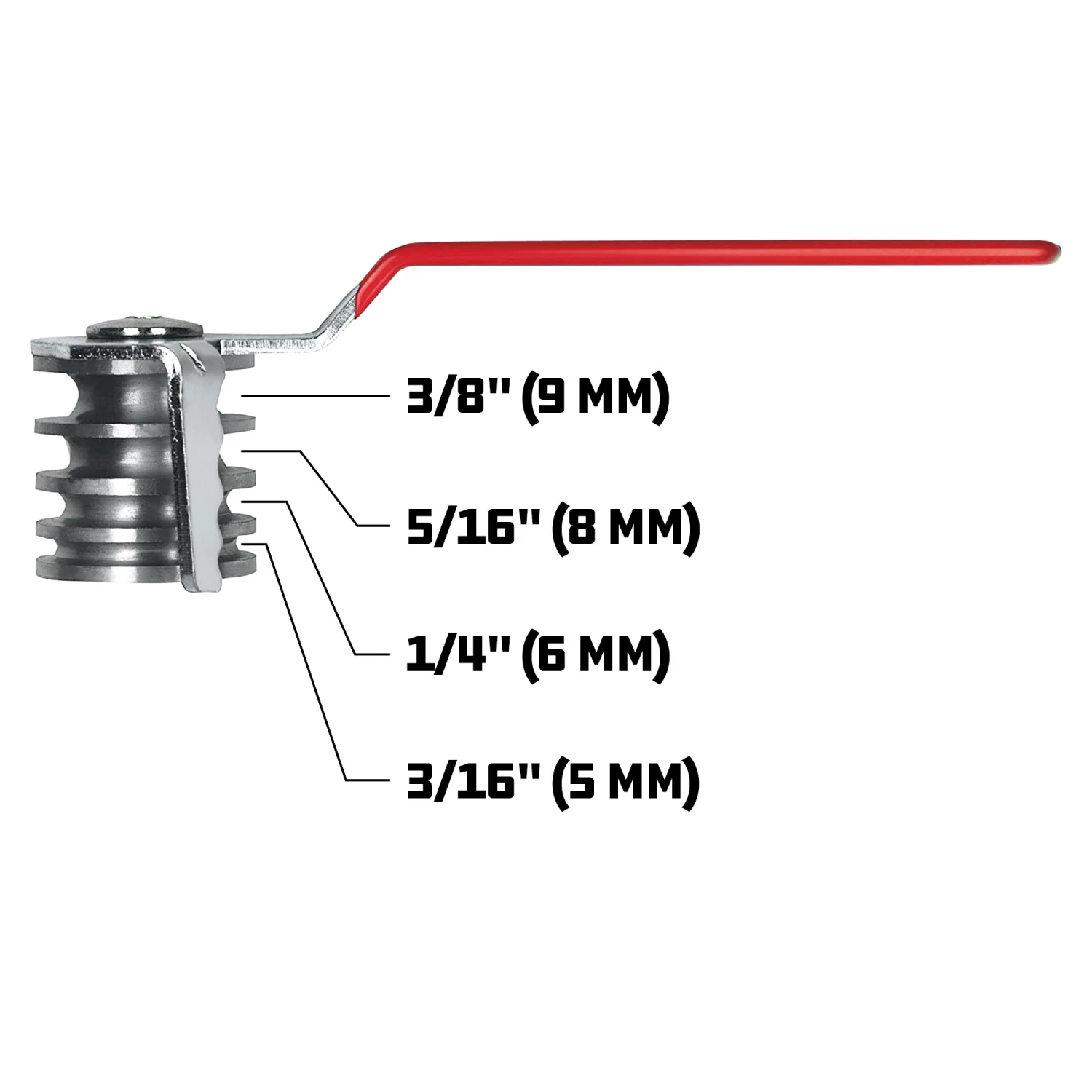 Servicing or custom bending tubing can be an expensive project to outsource. Having your own precision bending tool can make all the difference. The Powerbuilt Tubing Bender is perfect for bending brass, copper, aluminum, and brake line tubing up to 360 degrees. This heavy-duty tubing bender has four grooves for bending 3/16 inch (5 mm), 1/4 inch (6 mm), 5/16 inch (8 mm), and 3/8 inch (9 mm) tubing. It features a dipped comfort handle for added control and a frim grip. Every package comes with professionally written usage instructions and photos that take you step by step through proper tool usage. The tool meets or exceeds applicable ANSI standards and has a lifetime warranty.