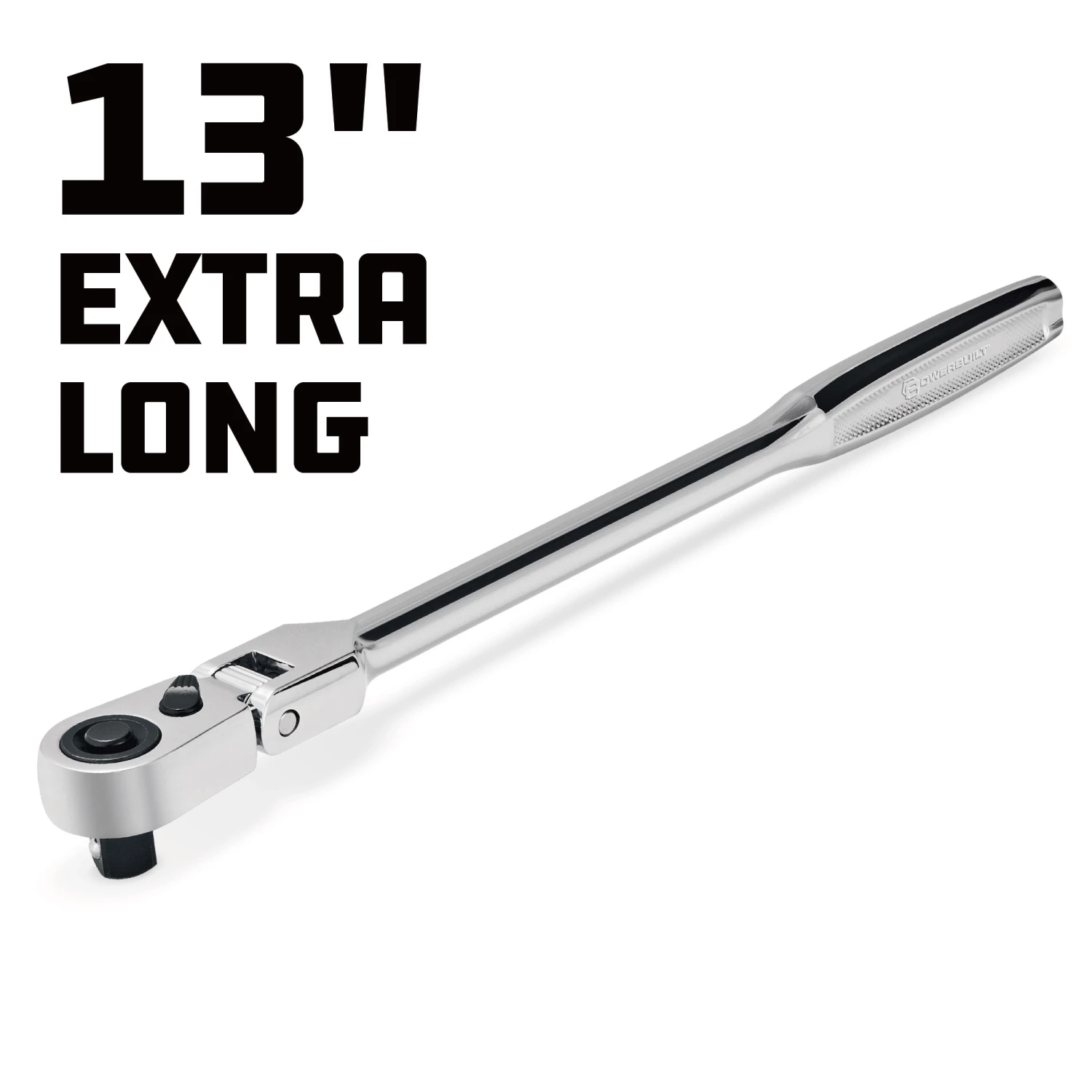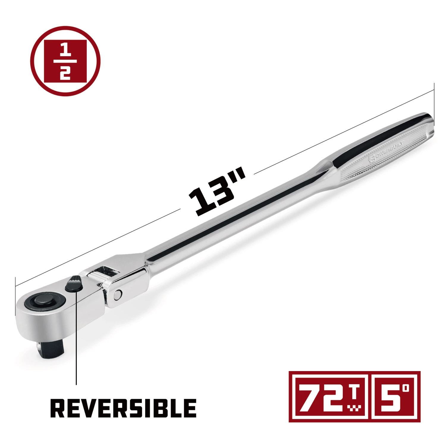Best Sale ๐ฏ Powerbuilt 1/2 Inch Drive 72 Tooth Pro Tech 13 Inch Long Reach Flex Head Ratchet with Contour Handle – 649954 ๐