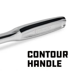 Powerbuilt Professional Technician ratchets are constructed of high-quality Chrome Vanadium (CR-V) steel with a mirror-polished chrome-plated finish and are precision crafted to exceed ANSI standards for quality and performance. The sealed quick-release button blocks dust and debris and makes socket changes quick and easy. The long reach contour handle fits flat in the palm of the hand adding both comfort and leverage and the thin-profile flex head allows you to swivel the ratchet head up to 180° making it easier to reach into those crowded spaces. These ratchets offer the look, feel and performance hard-working techs deserve.