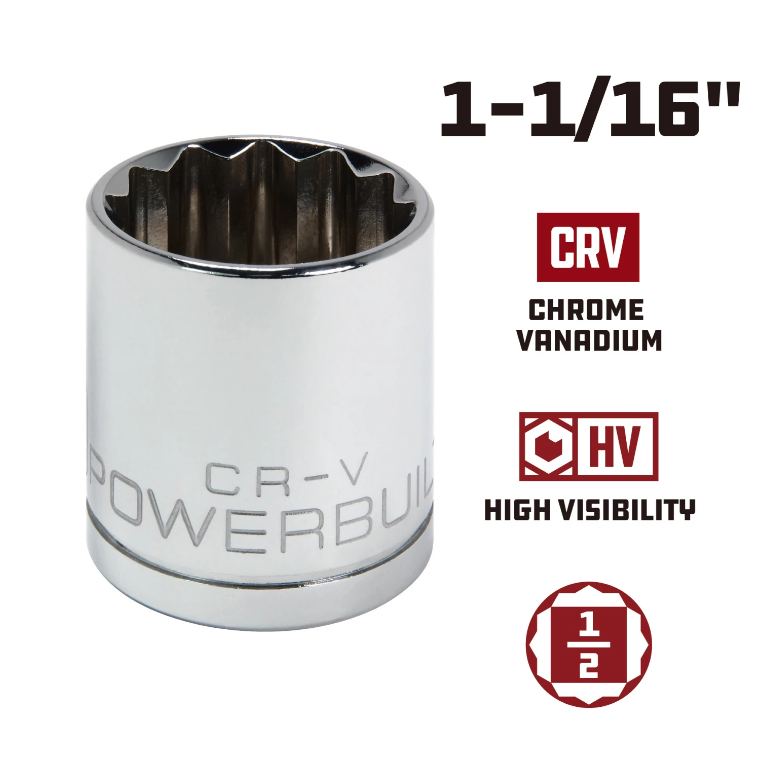 Best Sale 🤩 Powerbuilt 1/2 Inch Drive x 1-1/16 Inch 12 Point Shallow Socket – 642008 👍