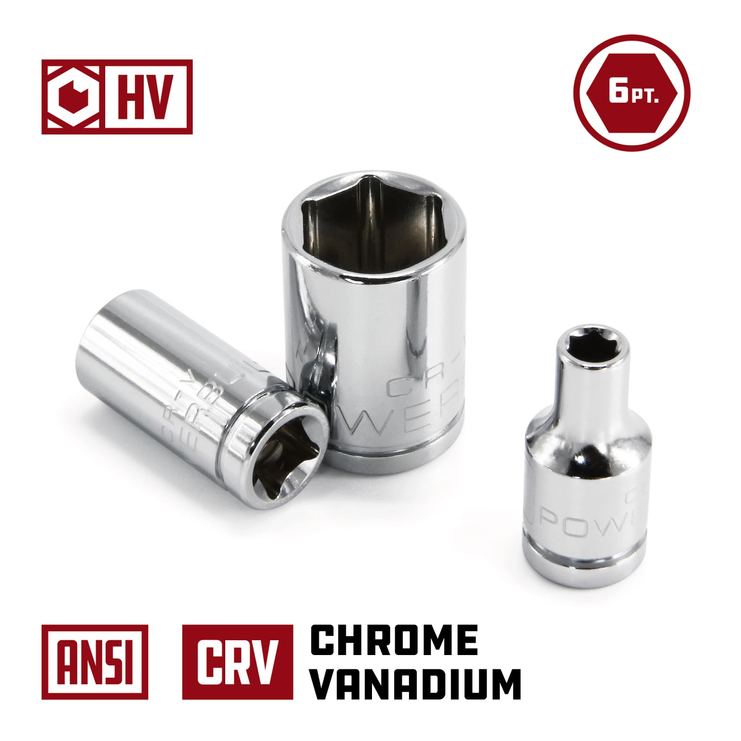 Powerbuilt Sockets are made from high grade Chrome Vanadium Steel and feature a mirror polished chrome plated finish for superior durability and corrosion resistance. Each Powerbuilt socket is cold forged, heat treated and produced with precision tolerances.