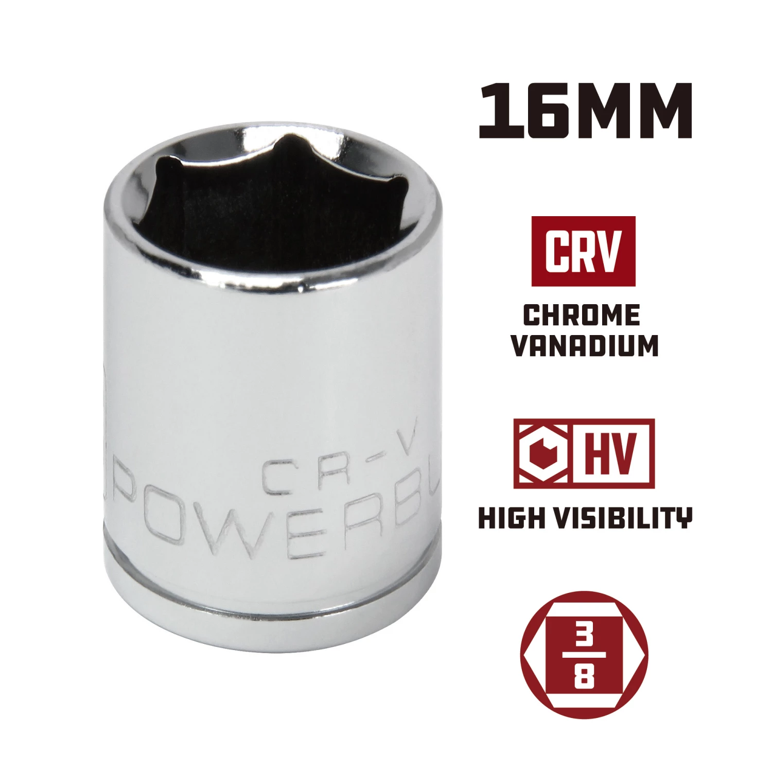 - Powerbuilt chrome sockets feature HV high visibility size markings that are three times larger for easy size selection.