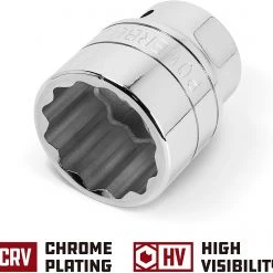The Powerbuilt 3/4 in. Drive x 42mm 12 Point Socket is constructed of high-quality Chrome Vanadium (CR-V) steel with mirror polished chrome plated finish.
