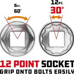 Beauty is more than skin-deep though. Inside Powerbuilt sockets you’ll find precision chamfered 12 Point faces that make it easier to guide them onto fasteners.