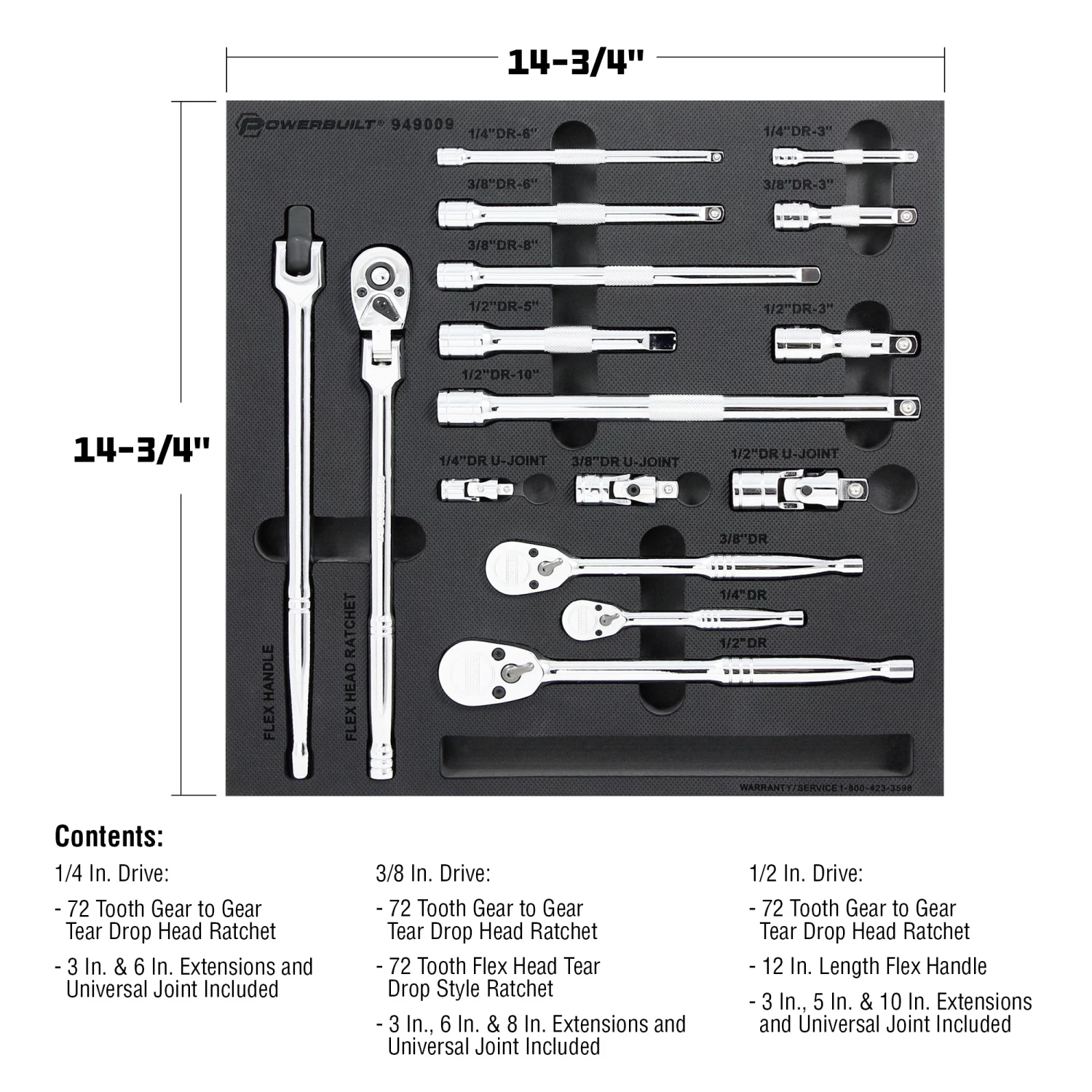 Best Sale ✔️ Powerbuilt Pro Tech 16 Pc. Ratchets & Socket Drive Tool Accessories Set – 949009 ✔️