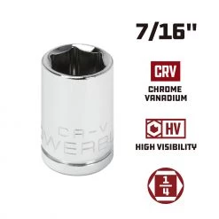 Brand new โ Powerbuilt 1/4 Inch Drive x 7/16 Inch 6 Point Shallow Socket – 648278 ๐