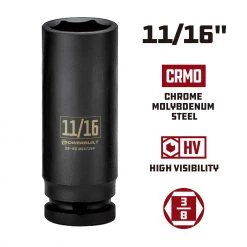 - 3/8″ drive 11/16″ impact deep well 6 point socket