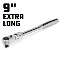 Budget 🥰 Powerbuilt 3/8 Inch Drive 72 Tooth Pro Tech 9 Inch Long Reach Flex Head Ratchet with Contour Handle – 649952 🧨