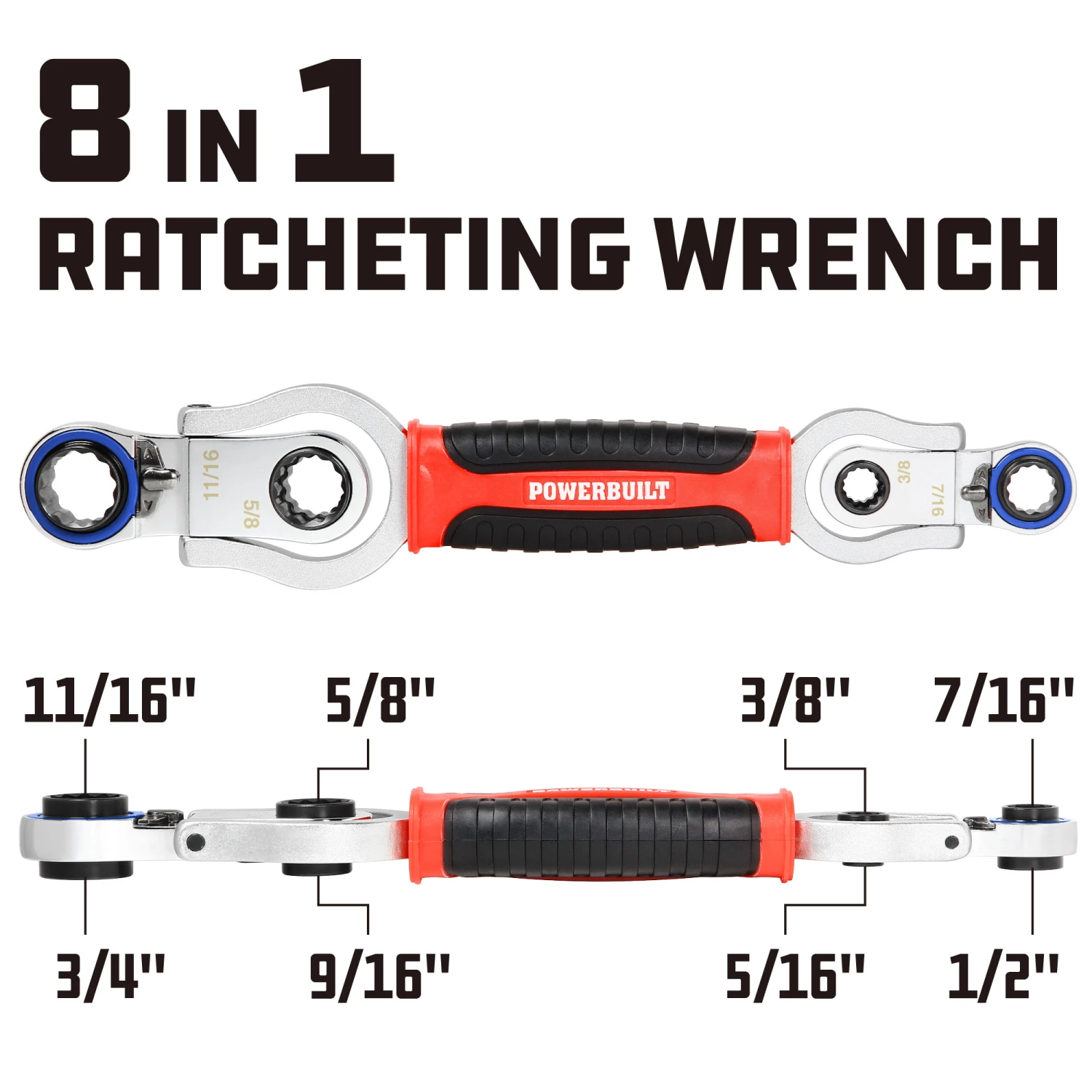 Powerbuilt? 8 In 1 SAE Reversible Flex Head Ratchet Box Wrench ? 941153