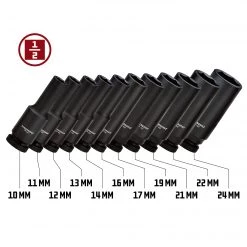 Buy 👍 Powerbuilt 11 Piece 1/2 Inch Drive 6 Point Metric Deep Impact Socket Set – 647048 🛒