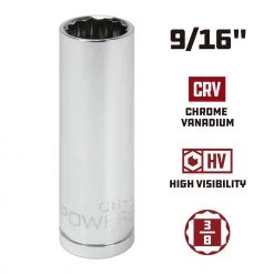 Buy 🎉 Powerbuilt 3/8 in. Drive x 9/16 in. 12 Point SAE Deep Socket – 940047 🤩