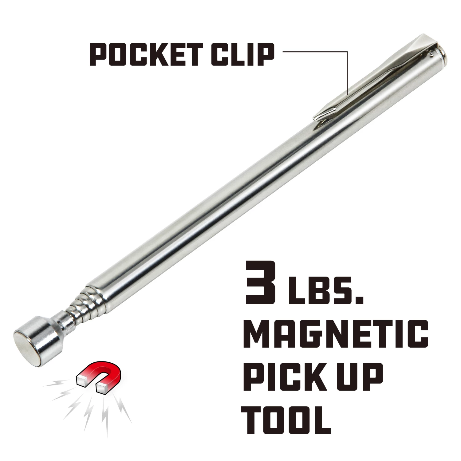 –Magnetic tip lifts up to 3 pounds