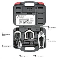 Want to save and reuse some parts while confidently servicing your vehicle’s front end? This top-quality Front End Servicing Set will help you with changing tie rods, ball joint steering linkages, and steering boxes allowing for reuse of parts. The inventive specialized pullers are designed to remove ball joints, tie rods, and Pitman arms without damage, unlike “pickle forks” type tools. The set contains everything you need for a front-end service tie rod end pullers, large and small pitman arm pullers, ball joint remover, and tie rod end lifter. This front-end servicing set will make the job easy using tools built for pros. The set comes with detailed instructions and usage photos in a heavy-duty organized carry case.