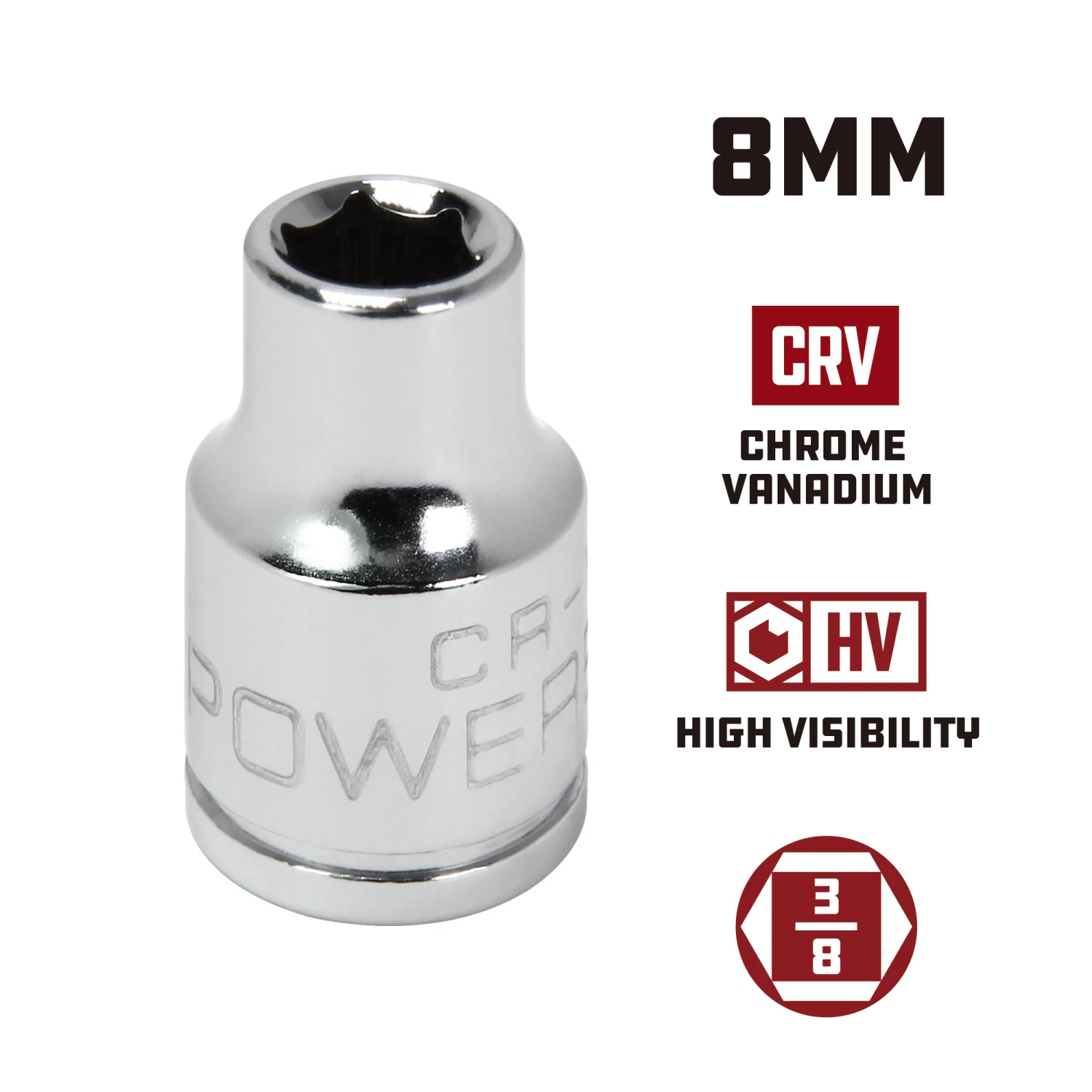 - Powerbuilt chrome sockets feature HV high visibility size markings that are three times larger for easy size selection.