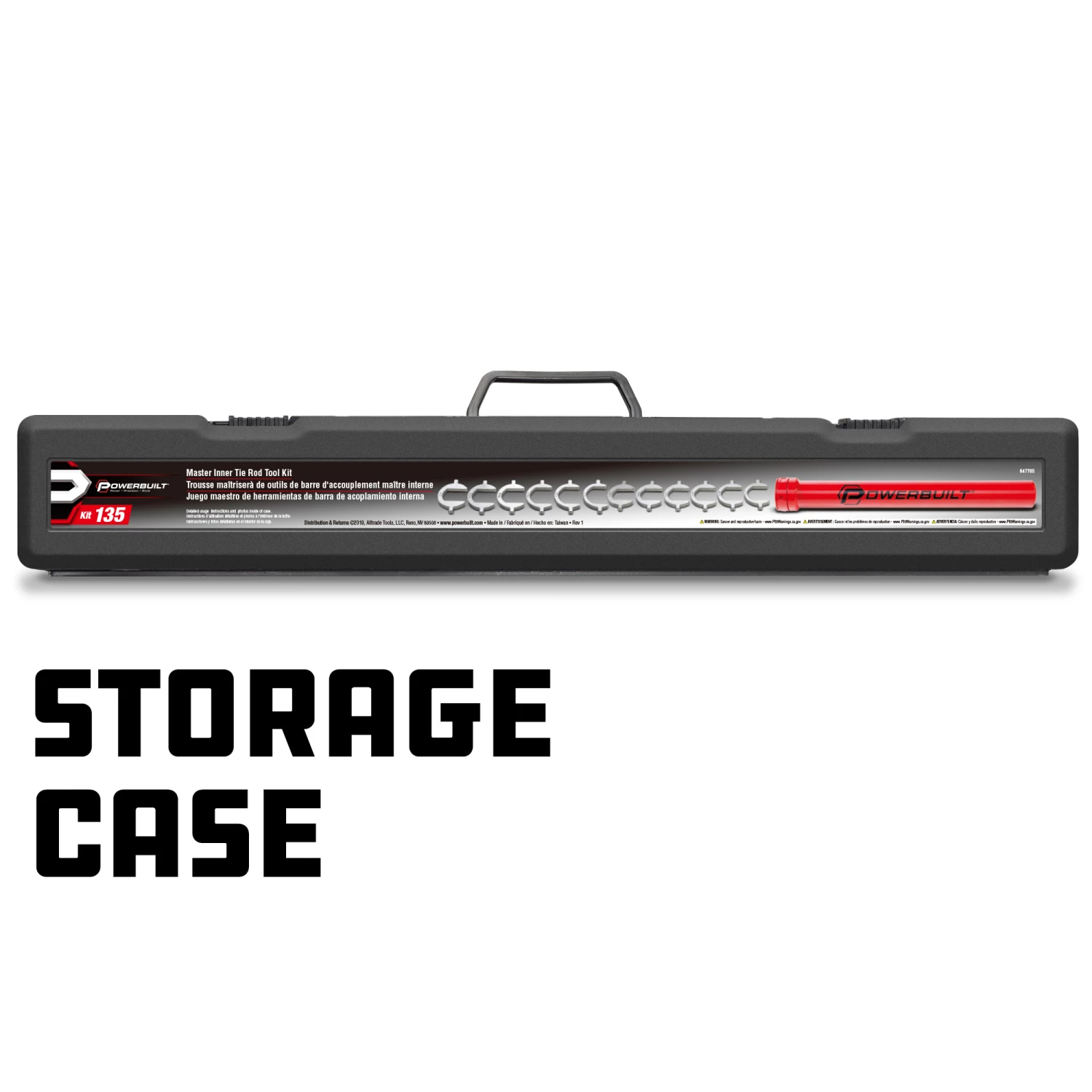 Servicing the hard-to-reach inner tie rods requires a specialty tool on most cars today. The Powerbuilt Master Inner Tie Rod Service Kit is a crucial toolset specifically designed to safely and efficiently remove, install, and adjust inner tie rods located in the steering system. The kit comes with a tie rod extension wrench and a selection of 12 adapters in both SAE and metric to cover most import and domestic cars. Designed to be simple to use, this tool kit is easy enough for the weekend mechanic, durable enough for the pros. Kit includes a heavy-duty carry case with usage photos and detailed instructions.