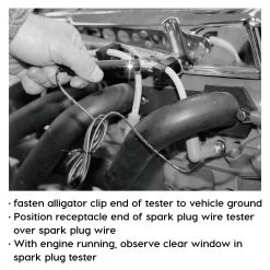 For easy testing of spark plug wires. Inductive design.Tester lights up when electrical current is detected.