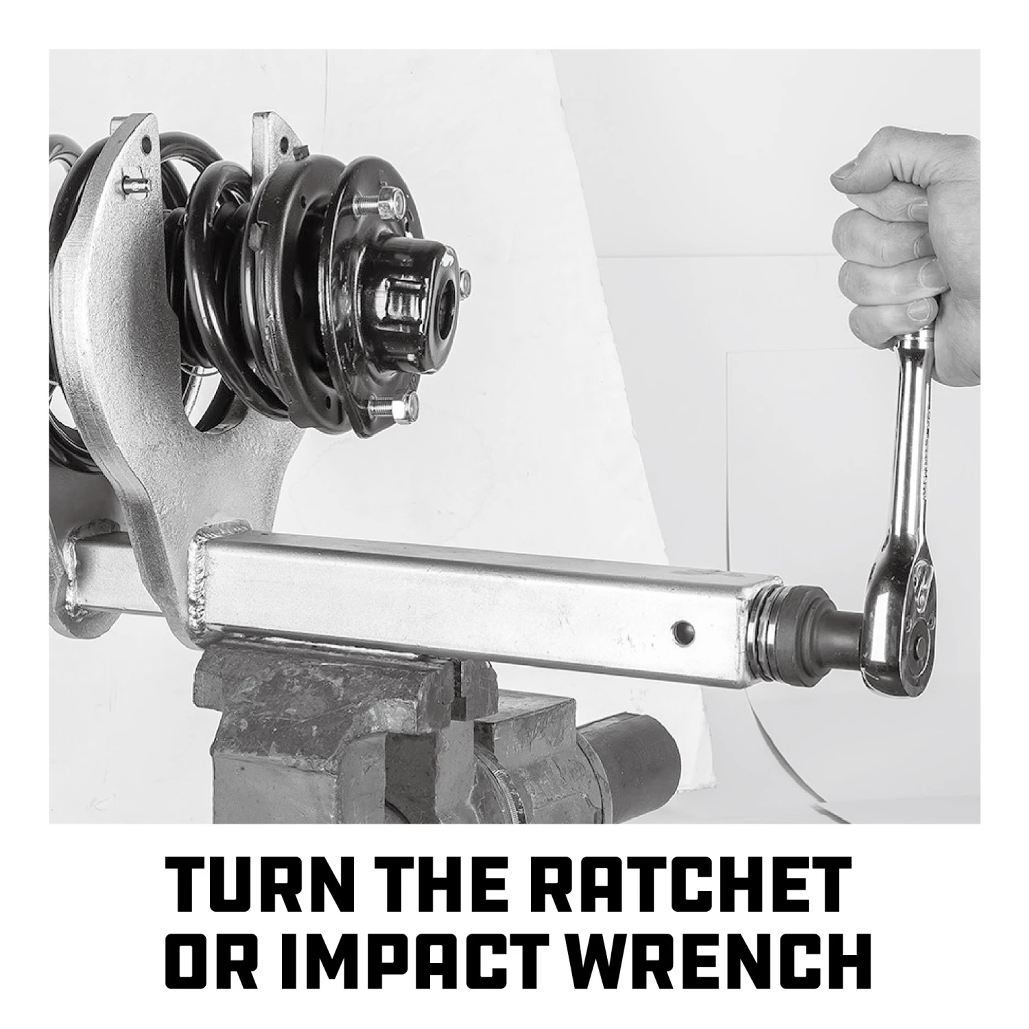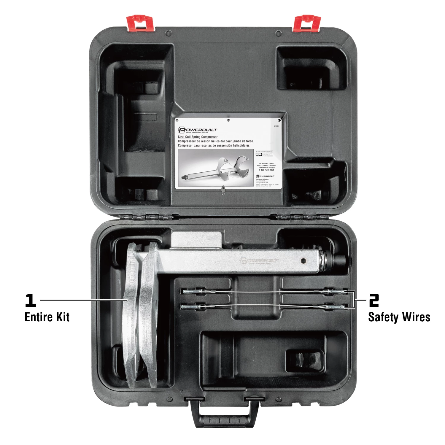 Strut spring tension anxiety is real when servicing worn struts. Safely compressing the high tension strut coil springs to remove the strut caps requires a specialized tool. Safety is first with the patented Powerbuilt Strut Tool / Strut Coil Spring Compressor tool designed for strength and security. If you have a properly mounted vice and a ½ inch impact drive or rachet handle, you can use this beefy steel compressor tool to quickly and safely remove the coil springs from most strut-type suspensions. Maximal capacity is 4000 pounds (1814 kg) with a spread from 1 inch to 8 inches makes this patented design the most heavy-duty and efficient tool for this specialized job. Let the Strut Tool / Strut Coil Spring Compressor tool relieve your strut servicing tension. Keep your kit well organized and protected for a lifetime of use in the heavy-duty carry case. Helpful detailed instructions and usage photos are included.