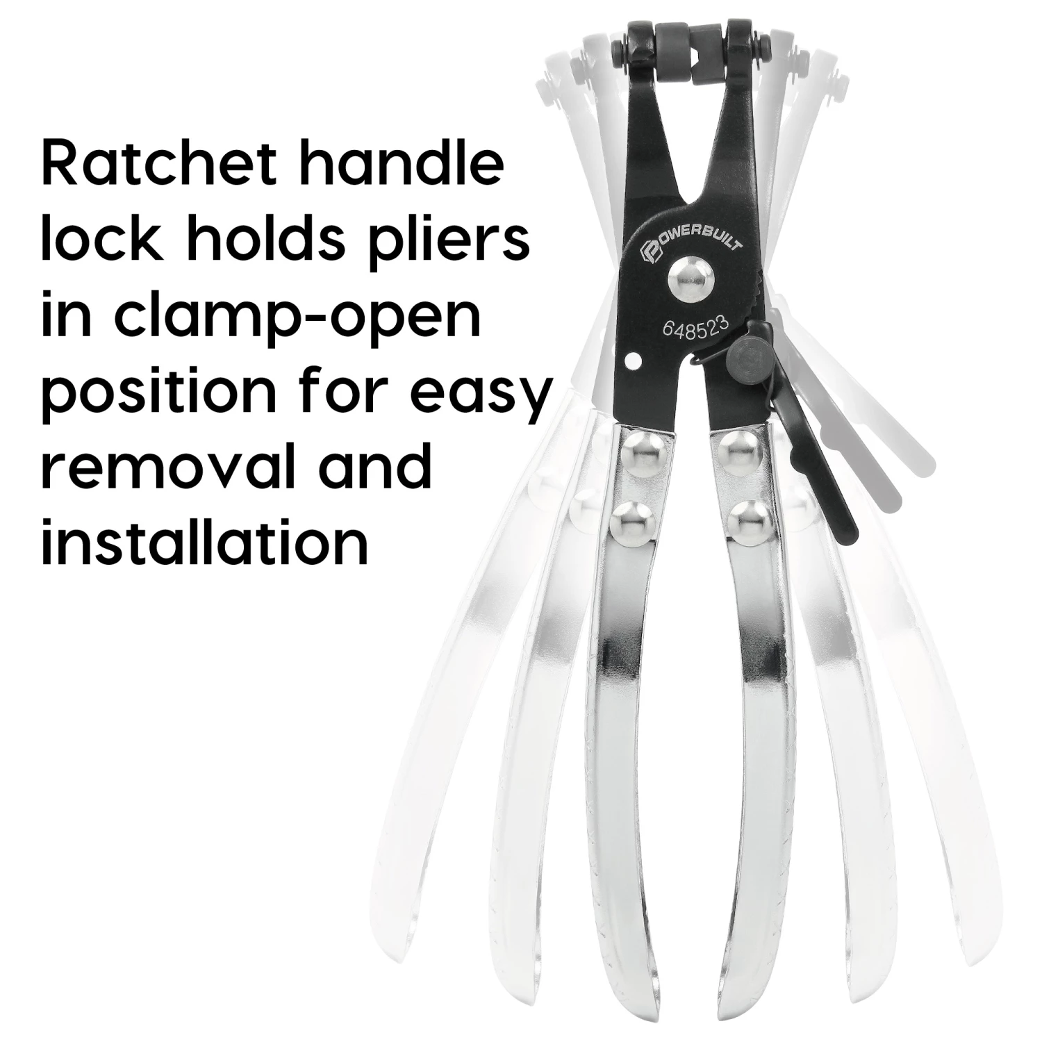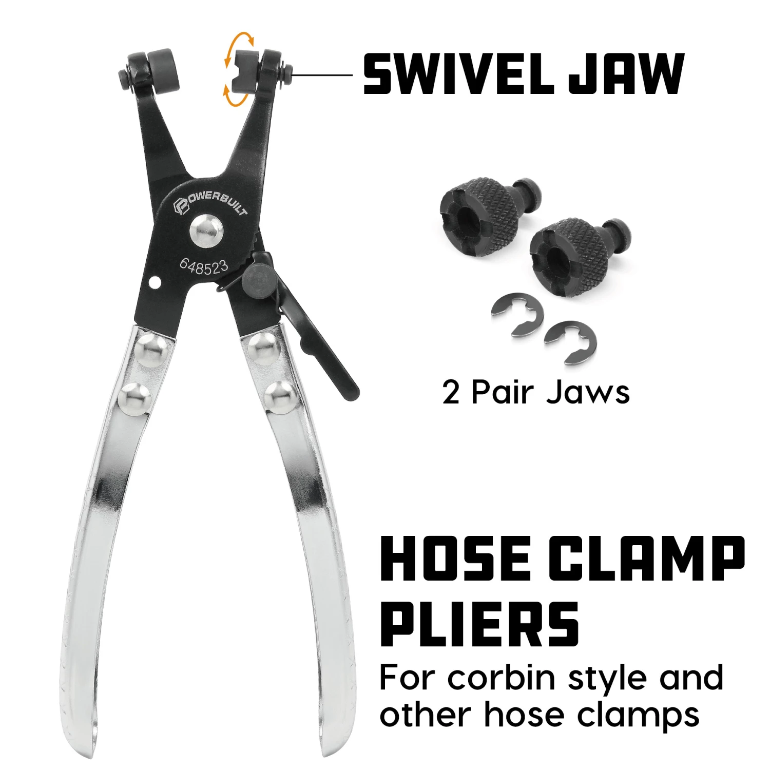 For Removing And Installing Hose Clamps. Ratcheting Adjustment Provides Locking Pliers Jaw With Four Different Fixed Positions. Securely Holds Ring-Style And Corbin Clamps During Removal Or Installation. Slot In Swiveling Jaw Piece Allows Engaging Clamp F