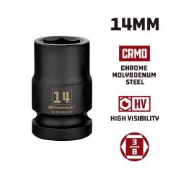 - Powerbuilt chrome sockets feature HV high visibility size markings that are three times larger for easy size selection.