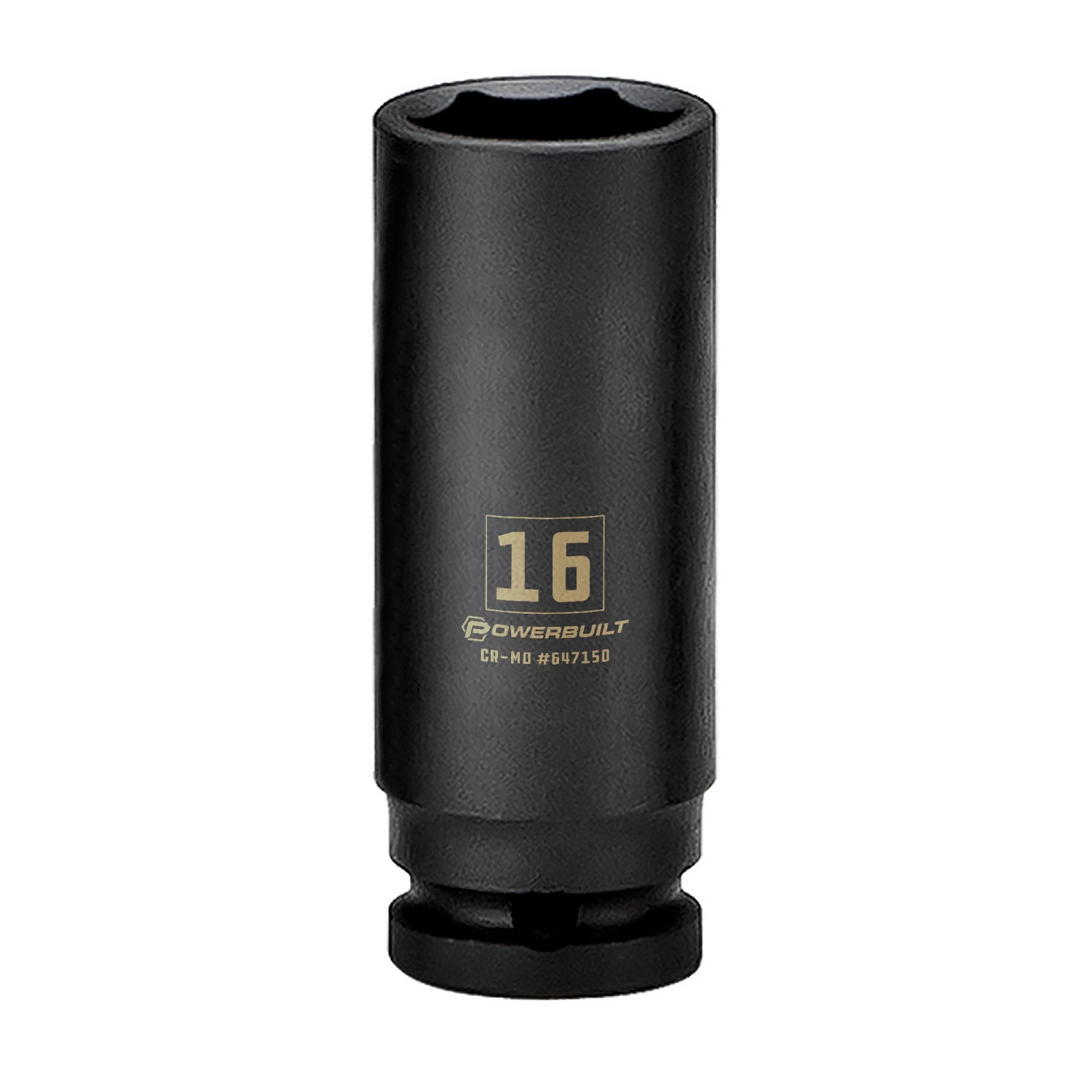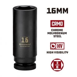 - 3/8″ drive 16mm impact deep well 6 point socket