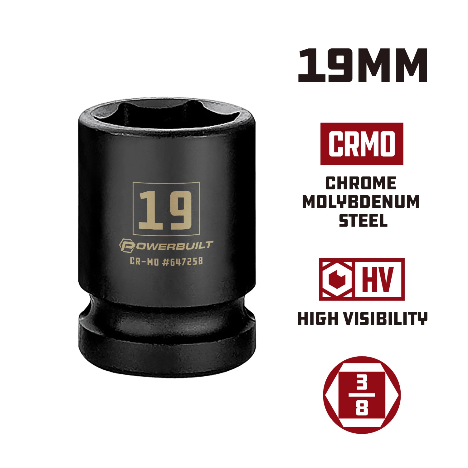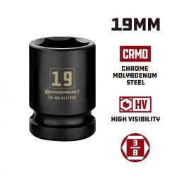 - Powerbuilt chrome sockets feature HV high visibility size markings that are three times larger for easy size selection.