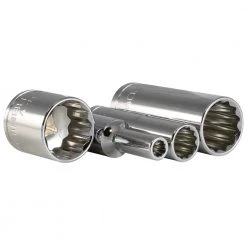The Powerbuilt 16 piece 3/8″ Dr. SAE 12 point socket set includes: shallow sockets:1/4″, 5/16″, 3/8″, 7/16″, 1/2″, 9/16″, 5/8″, 13/16″, 7/8″, 1/2″, 9/16″, 5/8″; deep sockets:11/16″, 3/4″, 13/16″, 7/8″.