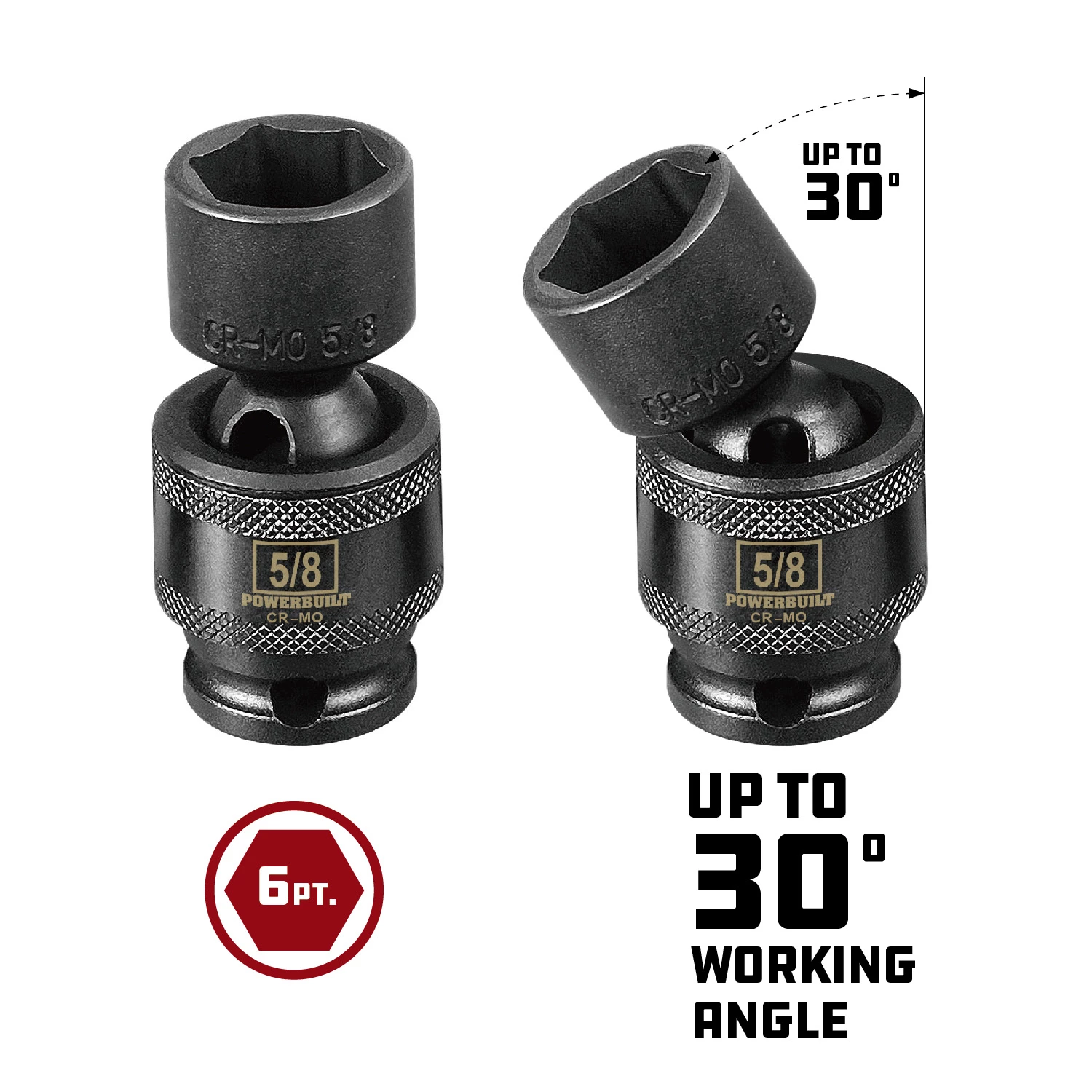 - Universal joint design works at angles for hard-to-reach fasteners.