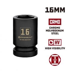 - Powerbuilt chrome sockets feature HV high visibility size markings that are three times larger for easy size selection.