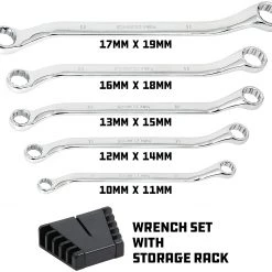 Set includes Metric Offset Box Wrenches: 10 x11mm, 12 x 14mm, 13 x 15mm, 16 x 18mm, 17x19mm
