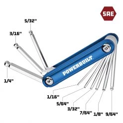 This handy folding SAE hex key set is perfect for the toolbox, bike bag, or workbench. It includes 9 of the most commonly needed SAEc hex key sizes, and each wrench features a ball end that drives at up to a 20 degree angle from vertical. Between that and the compact form factor, you’ll be able to reach those pesky cap screws that are impossible to reach and turn with a long arm hex key wrench. Hex key wrenches are constructed of durable, precision crafted chrome vanadium steel for a sure fit. The aluminum handles cut weight yet offer unparalleled stiffness under torque. A nice folding wrench set you’ll be happy you own. Hex key wrenches include 1/16, 5/64, 3/32, 7/64, 1/8, 9/64, 5/32, 3/16, 1/4-in.