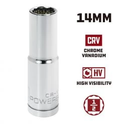 - 1/2” drive 14mm deep well 12 point socket
