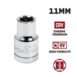 - Powerbuilt chrome sockets feature HV high visibility size markings that are three times larger for easy size selection.