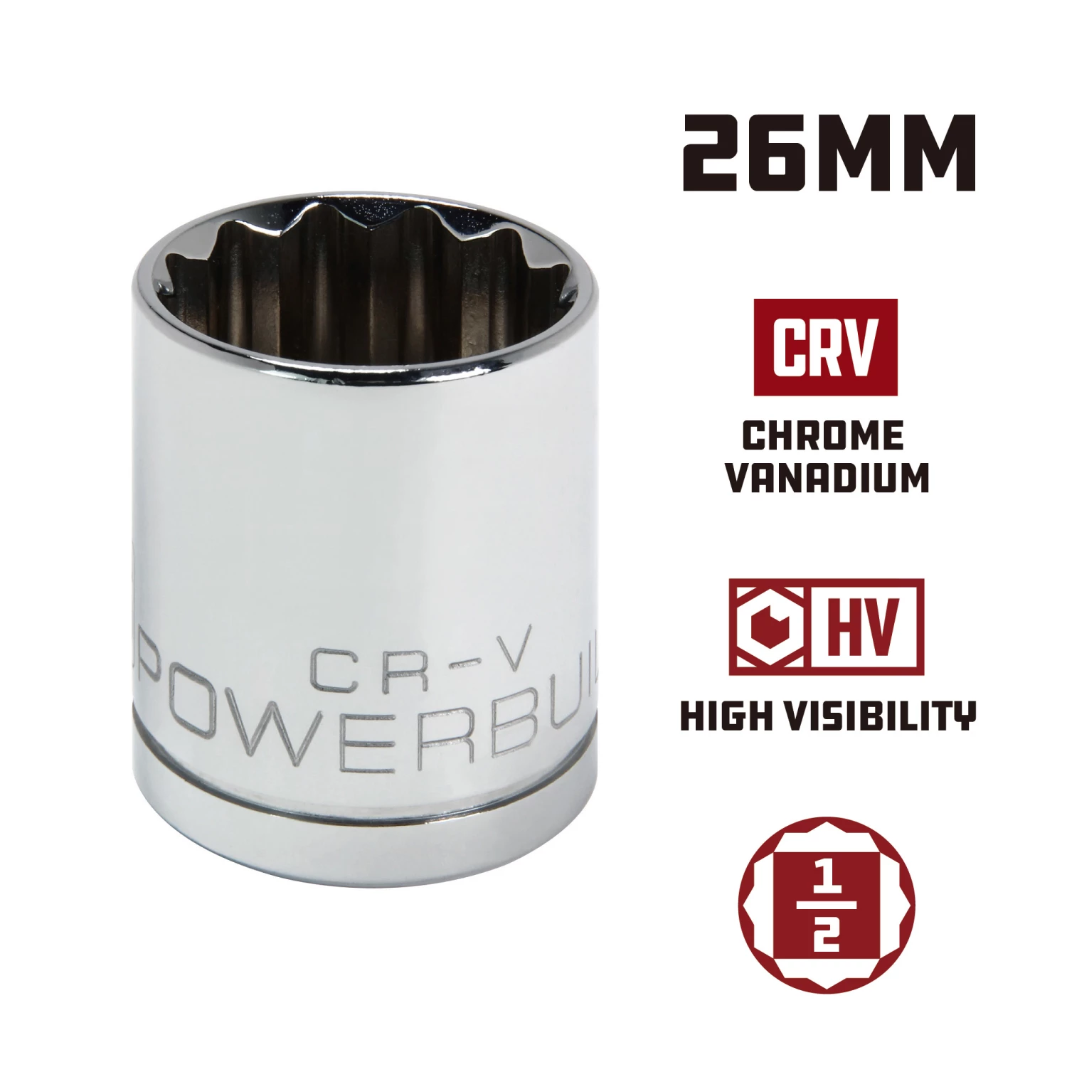 Powerbuilt Sockets are made from high grade Chrome Vanadium Steel and feature a mirror polished chrome plated finish for superior durability and corrosion resistance. Each Powerbuilt socket is cold forged, heat treated and produced with precision tolerances.