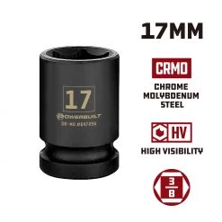 - Powerbuilt chrome sockets feature HV high visibility size markings that are three times larger for easy size selection.