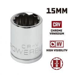 Flash Sale 👏 Powerbuilt 3/8 Inch Drive x 15 MM 12 Point Shallow Socket – 641020 ⭐