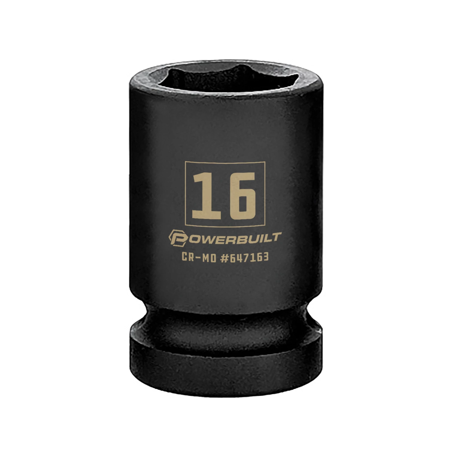 Hot Sale 🔔 Powerbuilt 1/2 Inch Drive x 16 MM 6 Point Impact Socket – 647163 💯